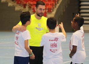 Mi llegada al balonmano fue curiosa, y es que mi padre no quería que jugara al futbol, y se presentó en los Maristas preguntando por algún deporte para su hijo. El hermano Tomás le contestó que tenía uno que ofrecer que me iba a hacer un hombre. Así que ese mismo día empecé y en el primer entrenamiento estuve allí tirando contra una pared con un balón que era más grande que yo. Después de 2 horas lanzando, mientras veía al resto jugando, al acabar el entrenamiento, el hermano Tomás me dijo: “sigue así chaval, sigue así que llegas”. Recuerdo que una de las expresiones que siempre decía el hermano Tomás. Ese hecho, esa persona y hasta esa expresión, me marcaron para el resto.