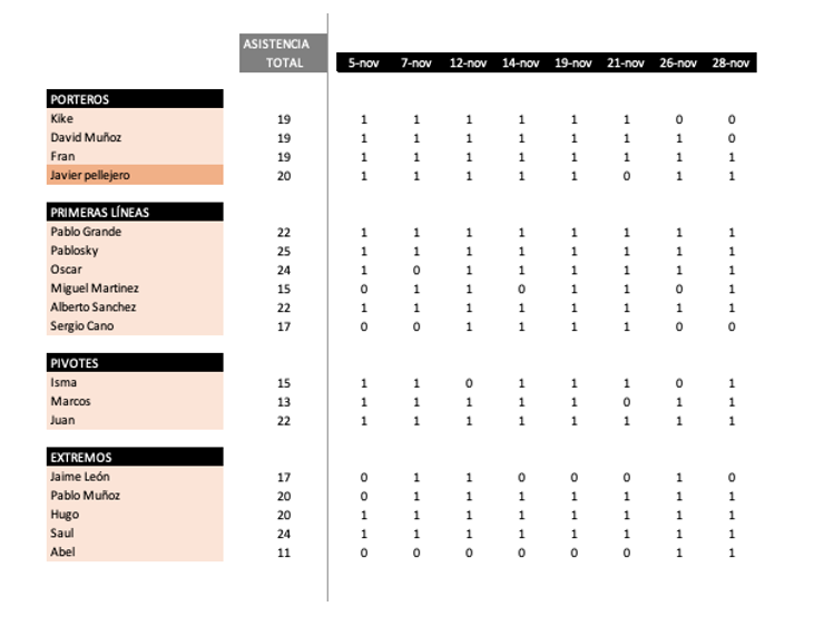 ASISTENCIA A ENTRENAMIENTOS